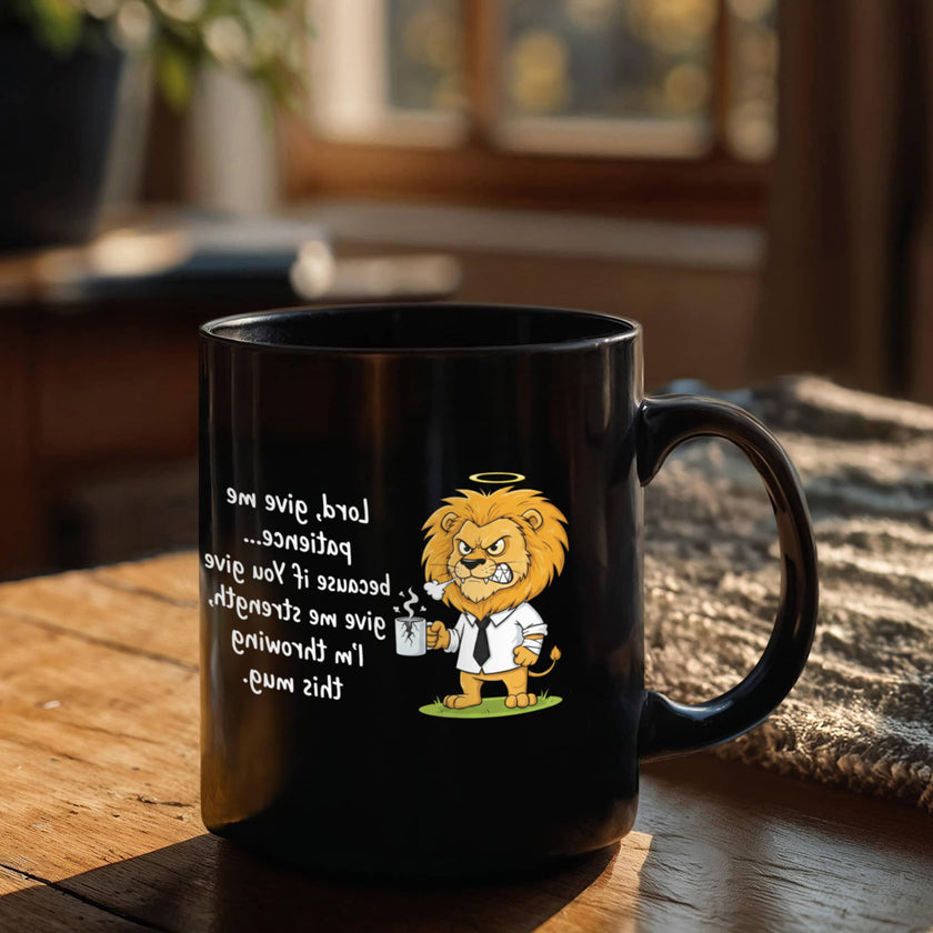 "Lord Give Me Patience" Lion Coffee Mug - Christian Humor Gift